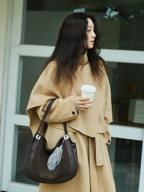무니유유 대용량 가죽 데일리 심플 고퀄리티 숄더백+가죽 키링