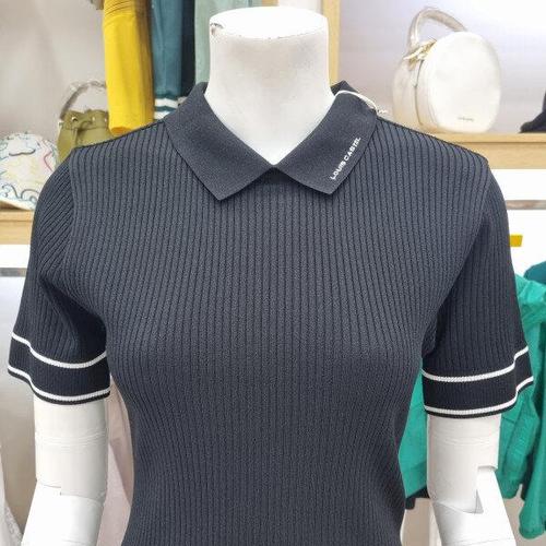 [루이까스텔]여성 블랙 미니멀 카라 반팔니트7LDSW431B_OD