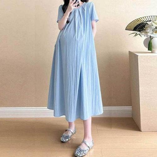[셀러허브_여성트랜드패션]ONM 플리츠 드레스 루즈핏 원피스 임부복 반팔 롱원피