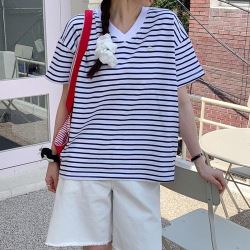 여름 여성복 반팔 루즈핏 캐주얼 브이넥 티셔츠