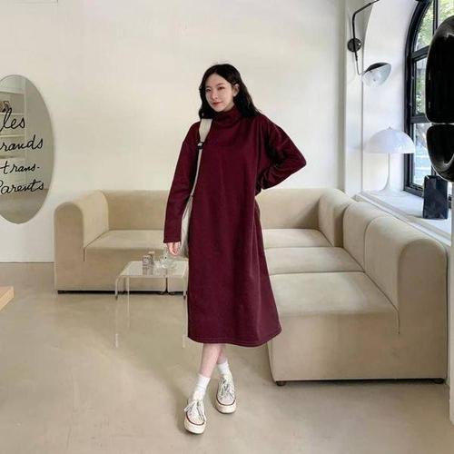 ZAJA 여성 가을겨울 원피스 루즈핏 터틀넥 니트 롱원피스