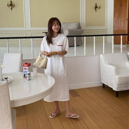 [에이치플러스몰]셔츠 여성 롱원피스 오버핏 데님 여름 라운드넥