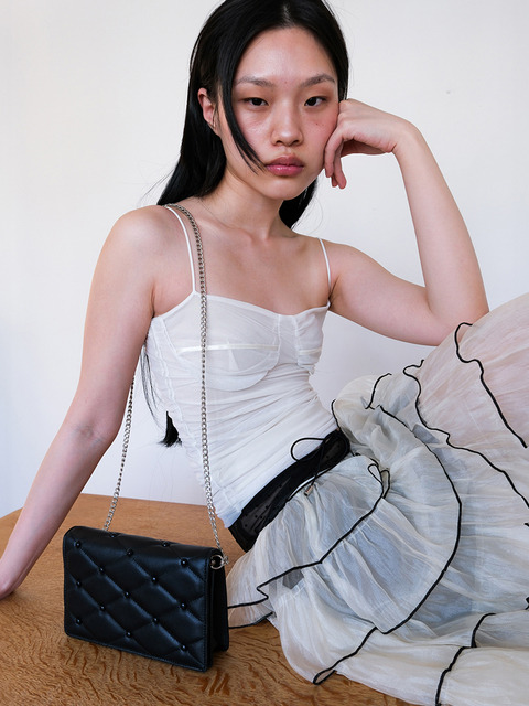 [루즈슬립오버] 미니 스터드 카우 레더 퍼프 크로스바디