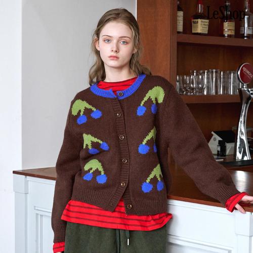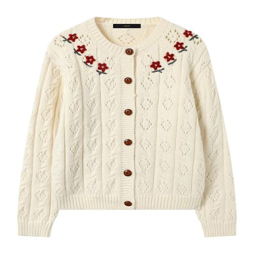WA365 울혼방 라운드넥 자수 가디건 여성 니트 스웨터
