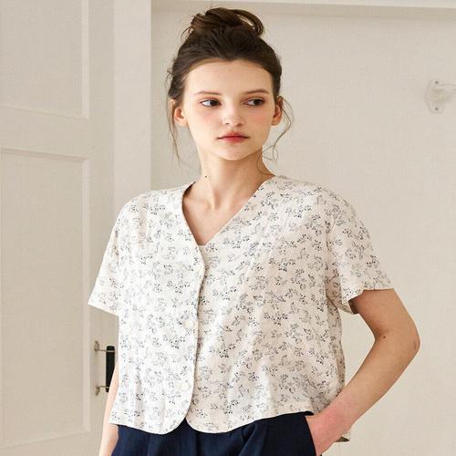 [르샵]브이넥 플라워 버튼 반팔 셔츠 (DQ2BA012A)