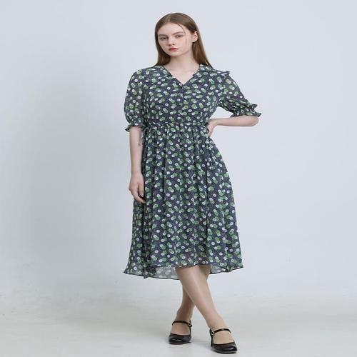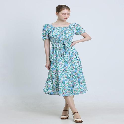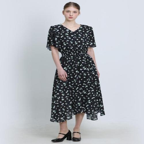 [르샵]플라워 패턴 퍼프 소매 반팔 원피스 (DQ2OW006A)