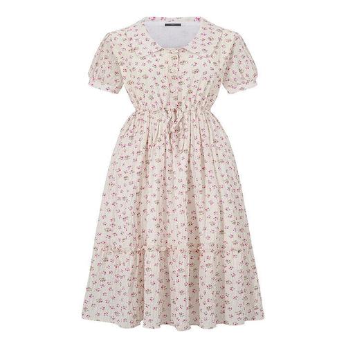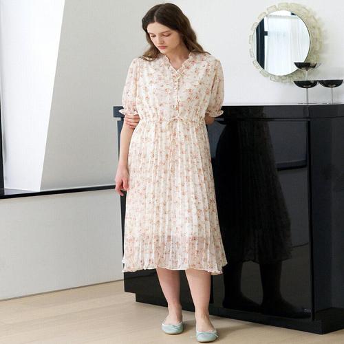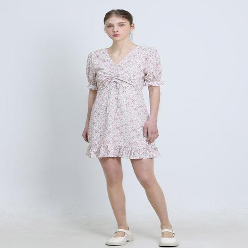 [르샵]플라워 패턴 스트링 버튼 반팔 원피스 (DQ2OW019A)