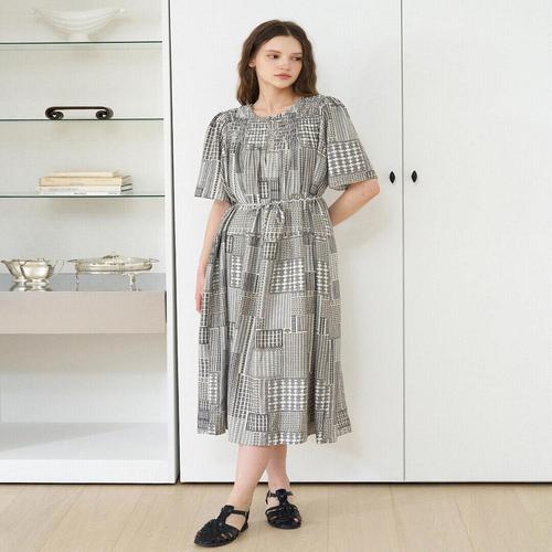 [르샵]체크 허리 스트랩 백 버튼 반팔 원피스 (DQ2OW020A)