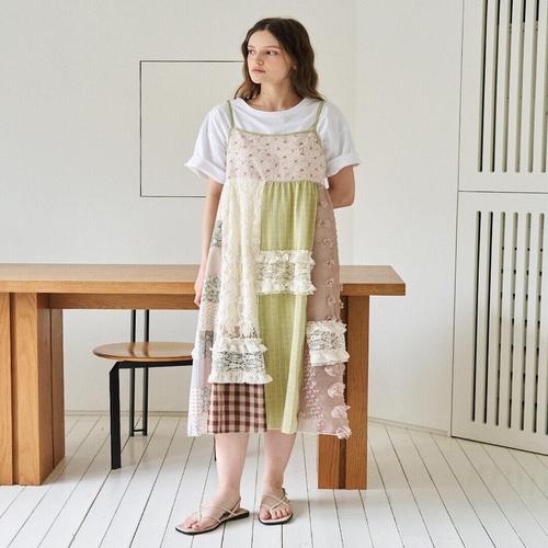 [르샵]빈티지 패치워크 스트랩 민소매 원피스 (DQ2OW017A)