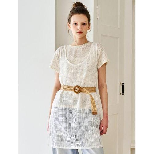 [르샵]벨트 티셔츠 세트 네트 롱 베스트 (DQ2VW002A)