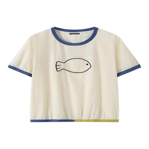 [르샵]물고기 드로잉 배색 반팔 티셔츠 (DQ2LW028A)