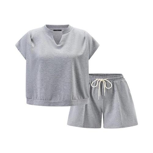 [르샵]브이넥 반팔 티셔츠 밴딩 팬츠 셋업 (DQ2OW024A)