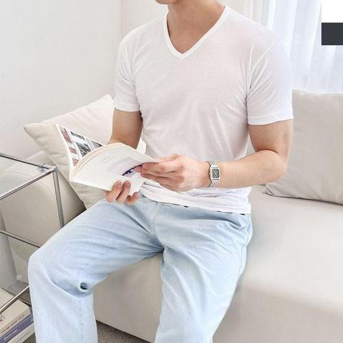 [에이치플러스몰]브이넥 남성 기본 반팔 티셔츠 면티
