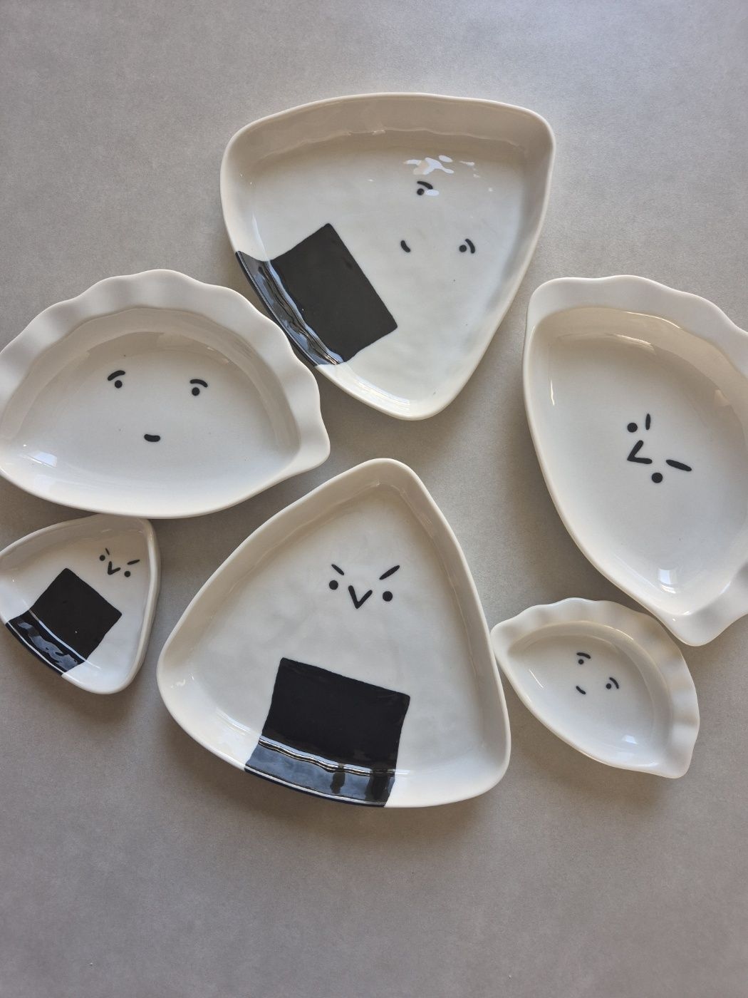 만두 삼각김밥 스마일 앵그리접시 빅 사이즈 귀여운접시 1p