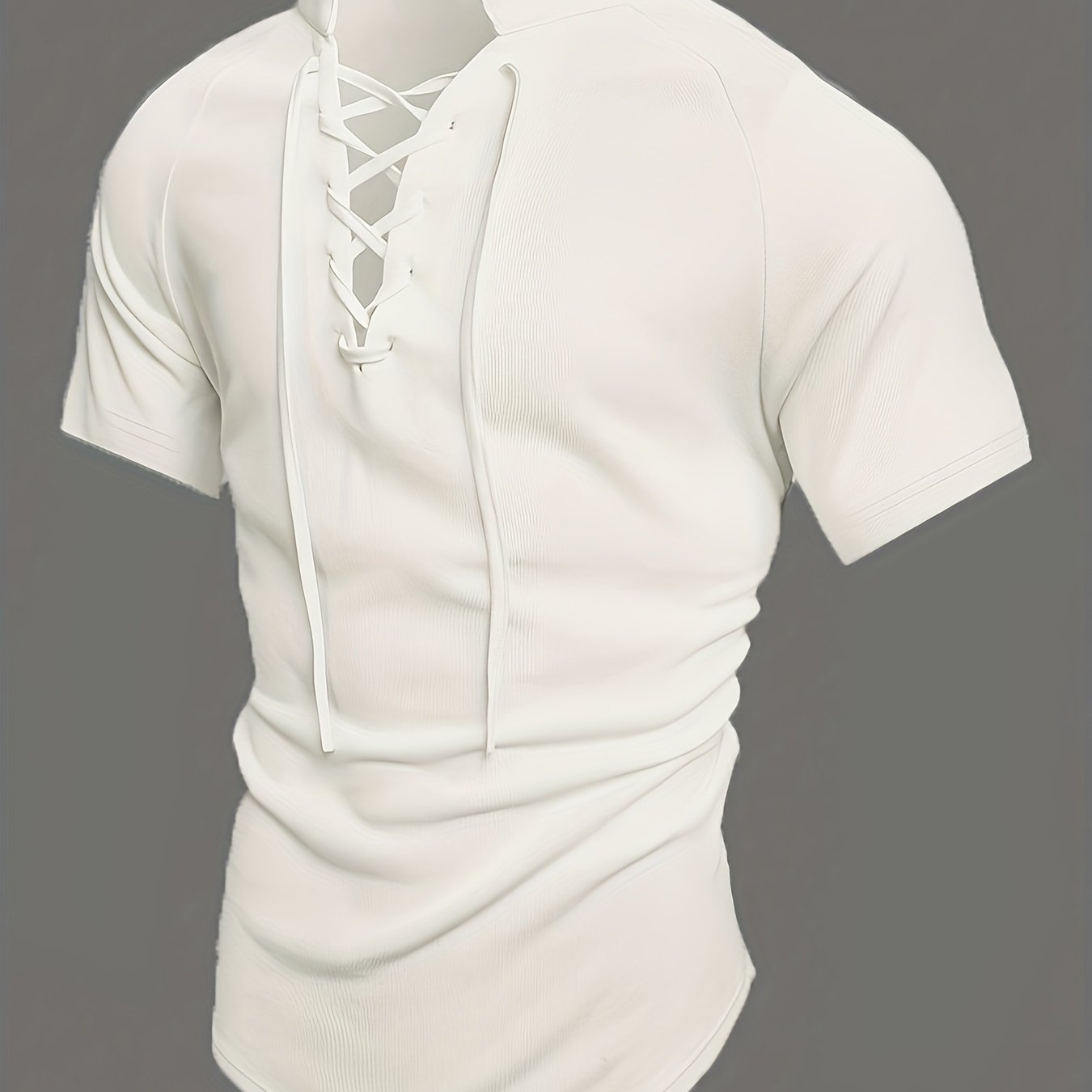 TEMU 인서런 남성 스타일리시 레이스업 V넥 슬림핏 파티 티셔츠 섹시 탑