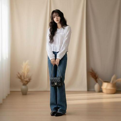 [지지피엑스]브이넥 레이스 셔링 리본 블라우스 (GQABA021D)