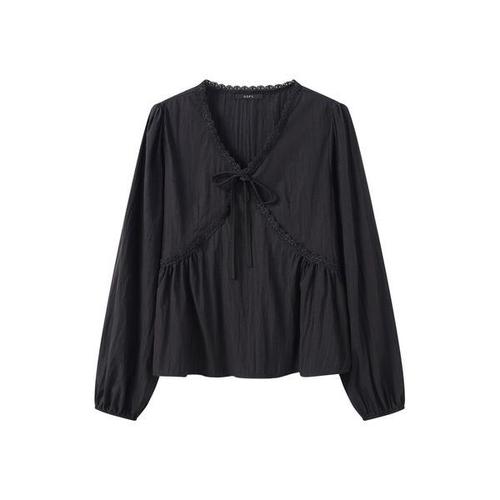 [BNX]여성 레이스 리본끈 코튼 블라우스