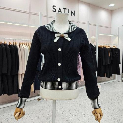 [샤틴]스트라이프 배색 리본브로치 니트/S244K966