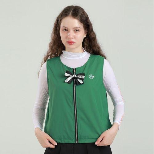 [체스]그린퀸 컬레인 여성골프 쿨아노락 리본브로치 집업조끼 여자골프집업조끼 여성여름골프조끼