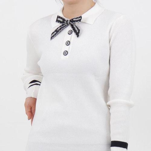 [지니골프]리본 브로치 카라 골지 니트 여성골프티