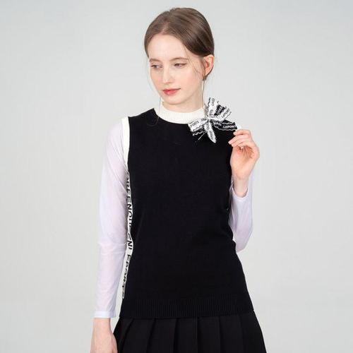 (WFGY4T8) 리본 브로치 배색 니트조끼 골프베스트