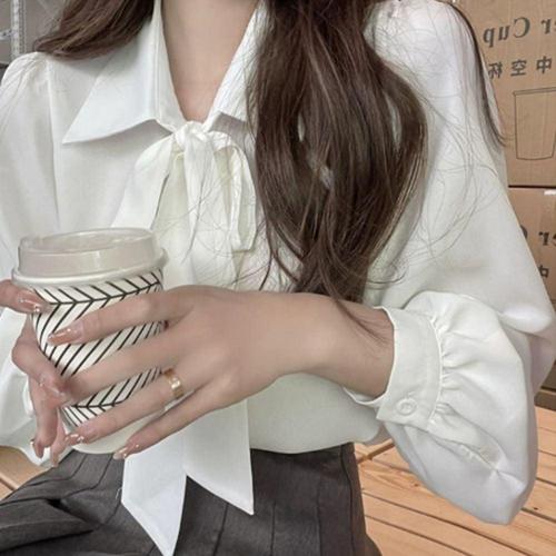 리본 타이 카라 오피스룩 긴팔 블라우스 WFLX6IC