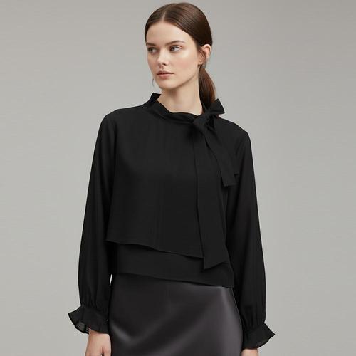 국산 여성 레이어드 랩 리본 크롭 블라우스 SIU-WBL-21020-블랙