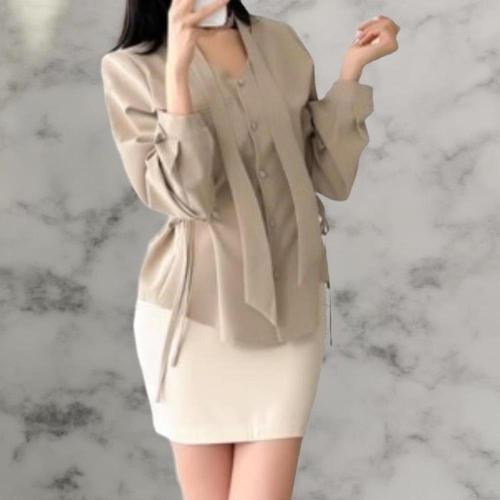 [다잇템]여성 타이넥 페미닌 사이드리본 베이직 셔츠