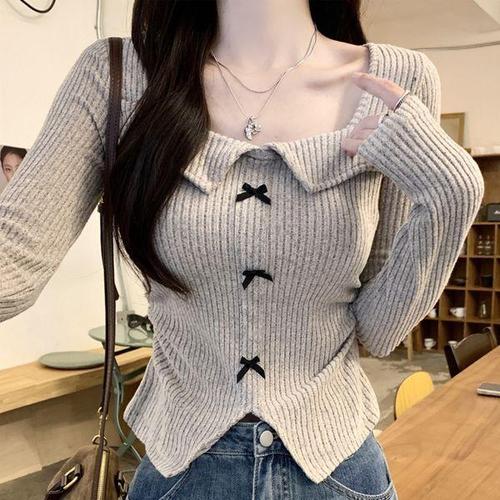 [랄라모션]스퀘어 리본 니트셔츠(llm0434)