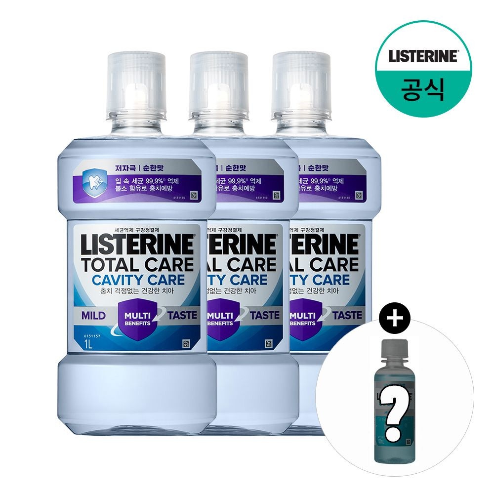 리스테린 토탈케어 캐비티케어 마일드 1L, 3개 + 증정(캐비티케어마일드100ml, 2개)