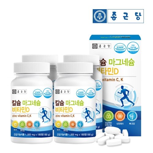 [비밀특가] 종근당 칼슘 마그네슘 비타민D 총 12개월분 4병/아연/비타민C/비타민K