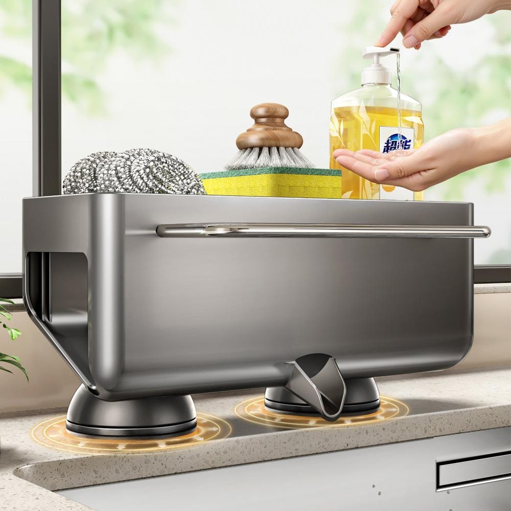 [해외] 흡착식 주방 싱크대 물빠짐 수납선반 스펀지 수세미 홀더