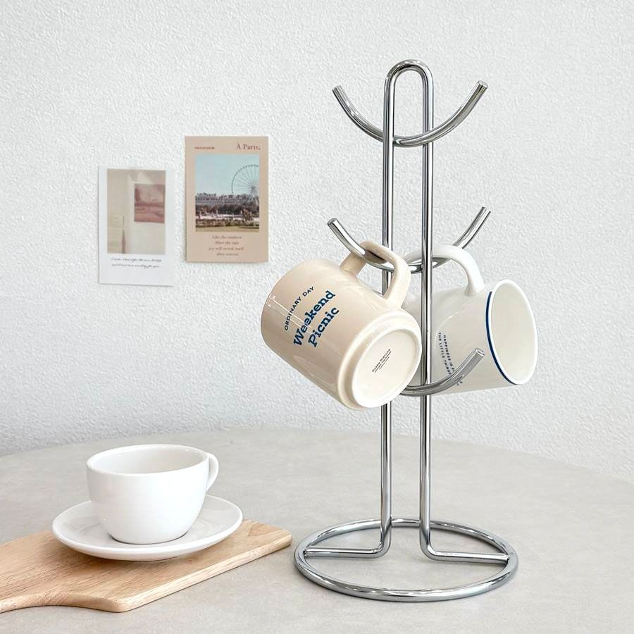 스텐 컵걸이 미니멀 주방정리 머그컵 거치대 6구