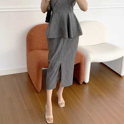[옷자락]여자 여름 린넨 홀터넥 슬림핏 레이어드 니트 롱스커트 투피스