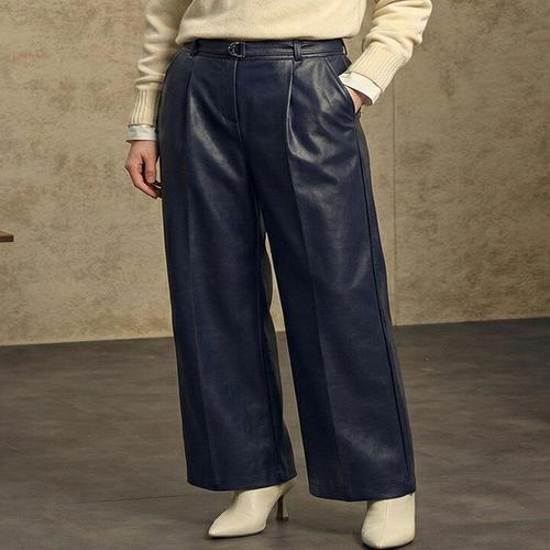 [리오벨][리오벨] FAUX 레더 세미와이드 팬츠