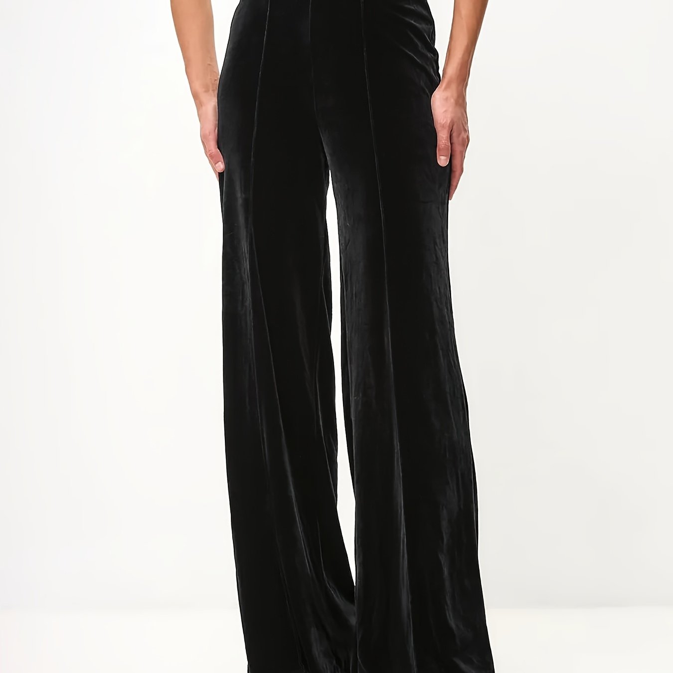 TEMU 여성용 우아한 벨벳 하이웨이스트 와이드 레그 팬츠 | 부드러운 스트레치 원단, 캐주얼하고 편안함, 모든 계절에 적합