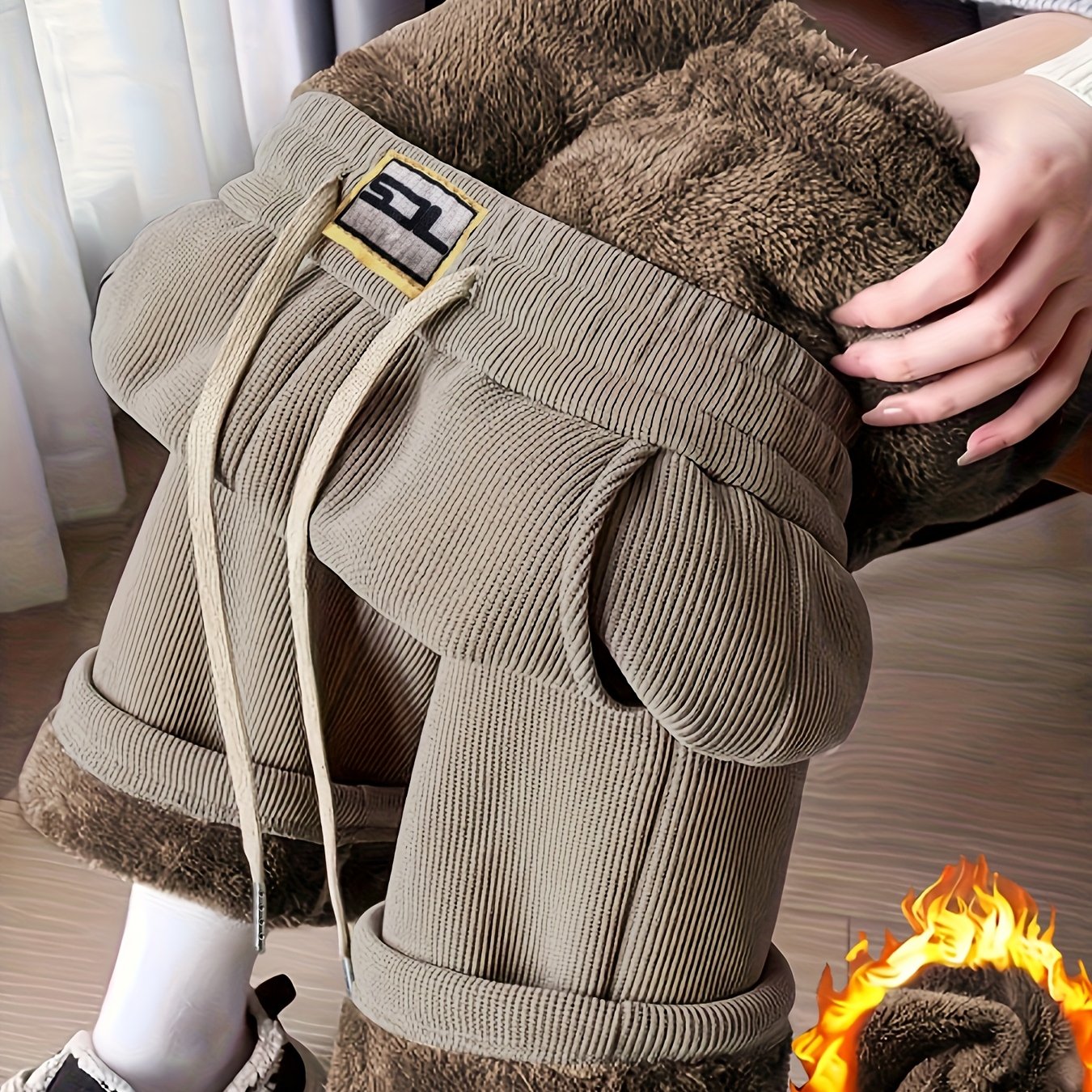 TEMU 여성용 하이웨이스트, 좁은 긴 플러시 와이드 레그 팬츠, 두꺼운 안감, 루즈핏 캐주얼 스포츠 트라우저 (엄마들을 위한)|스포츠|냉장고바지|바지