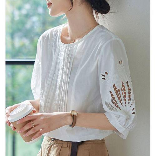 [패션시그널]리프펀칭 5부소매 블라우스 AA3BF5
