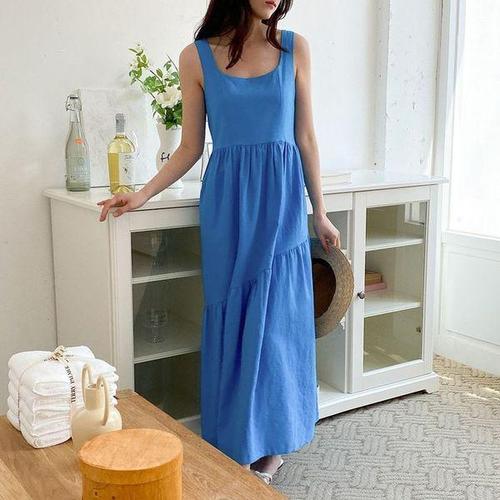내추럴 린넨 민소매 롱원피스 썸머 미니멀 데일리룩