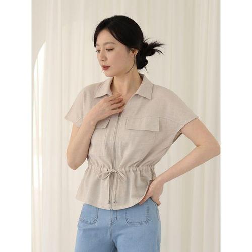 [웬디즈갤러리]캐디스 허리스트링 반팔 자켓 /여름 린넨 조끼 외출룩 VJK102