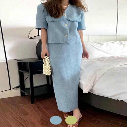 [귈림][귈림] 린넨 트위드 반팔 자켓+롱스커트(GBMSE402P)