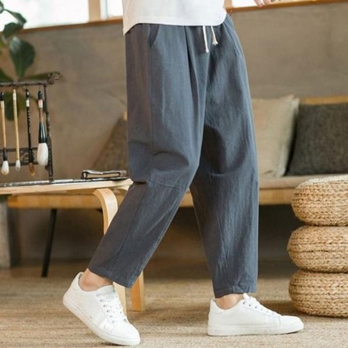 [셀러허브_여성트랜드패션]린넨팬츠 와이드핏 차이나풍 면바지 배기팬츠 시원한 캐주얼 남자 남자바지