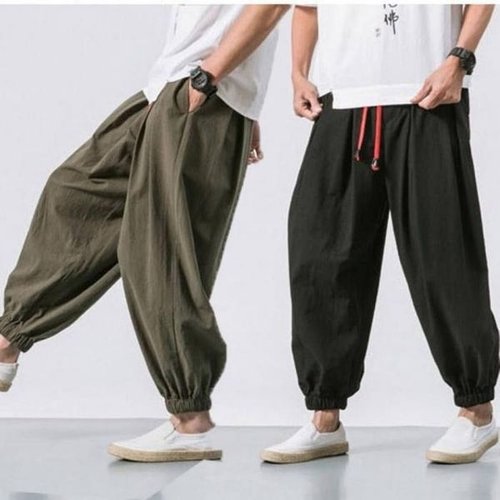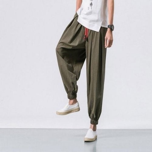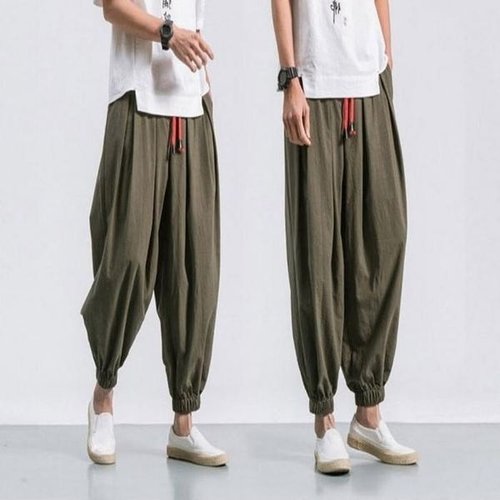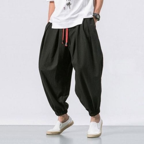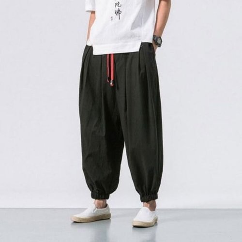 [셀러허브_여성트랜드패션]남자와이드팬츠 가을 린넨 블루머 배기 남자밴딩팬츠 넉넉 마바지