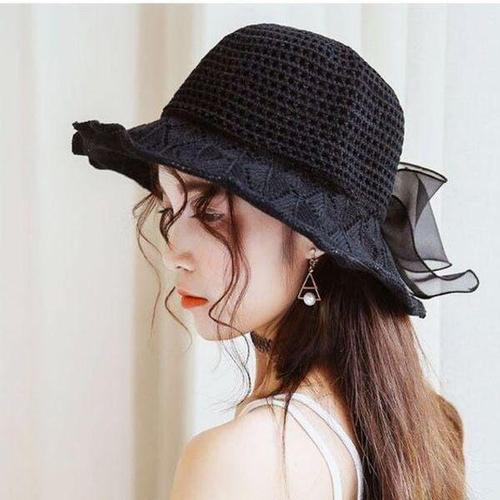 [에이치플러스몰]리넨 리본 썬캡모자 여성 벙거지모자 밀짚 버킷햇