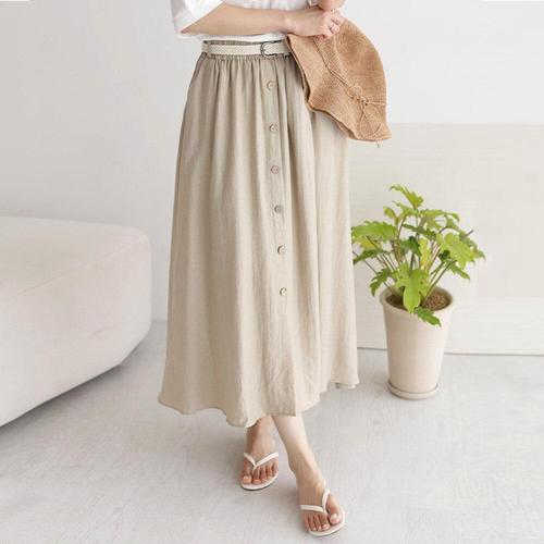 [유야]여성 벨트세트 앞단추 면 린넨 롱 스커트 -FSK0240- 여름