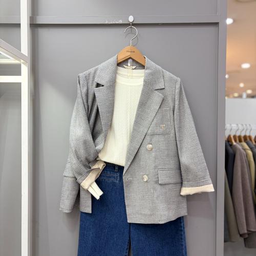 [올리비아로렌][데일리스트]체크 린넨자켓 MDBFU3M3141