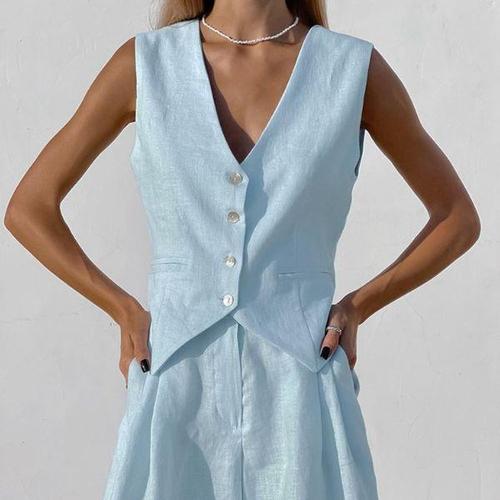 [옷자락]여성 린넨 조끼와 투피스 캉캉 미니스커트 세트