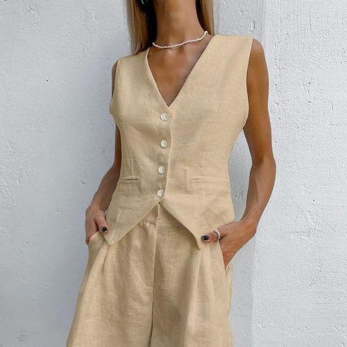 [에이스토리] 린넨투피스 어깨패드 크롭나시 린넨와이드팬츠 세트