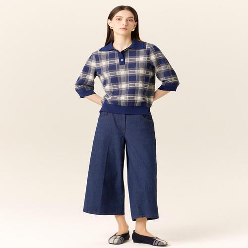 닥스 여성 블루 워싱 린넨혼방 하프 기장 와이드핏 뒷밴딩 데님 팬츠 (DLPA5B417B2)