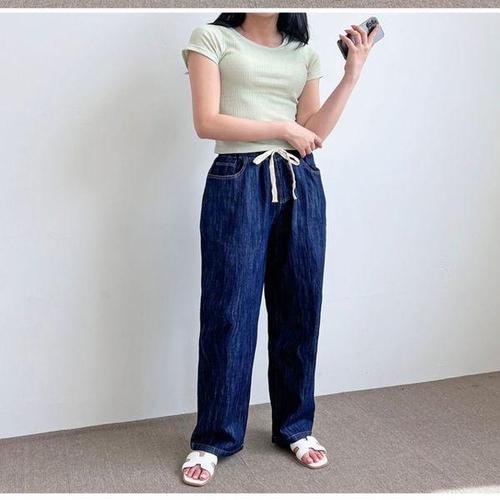 엘케이트 여자 데님 팬츠 린넨 밴딩 와이드 쿨링 여름 청바지 LFLP008